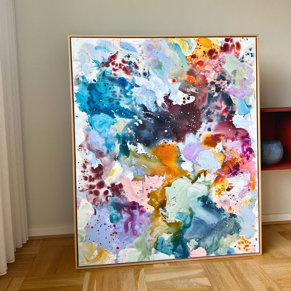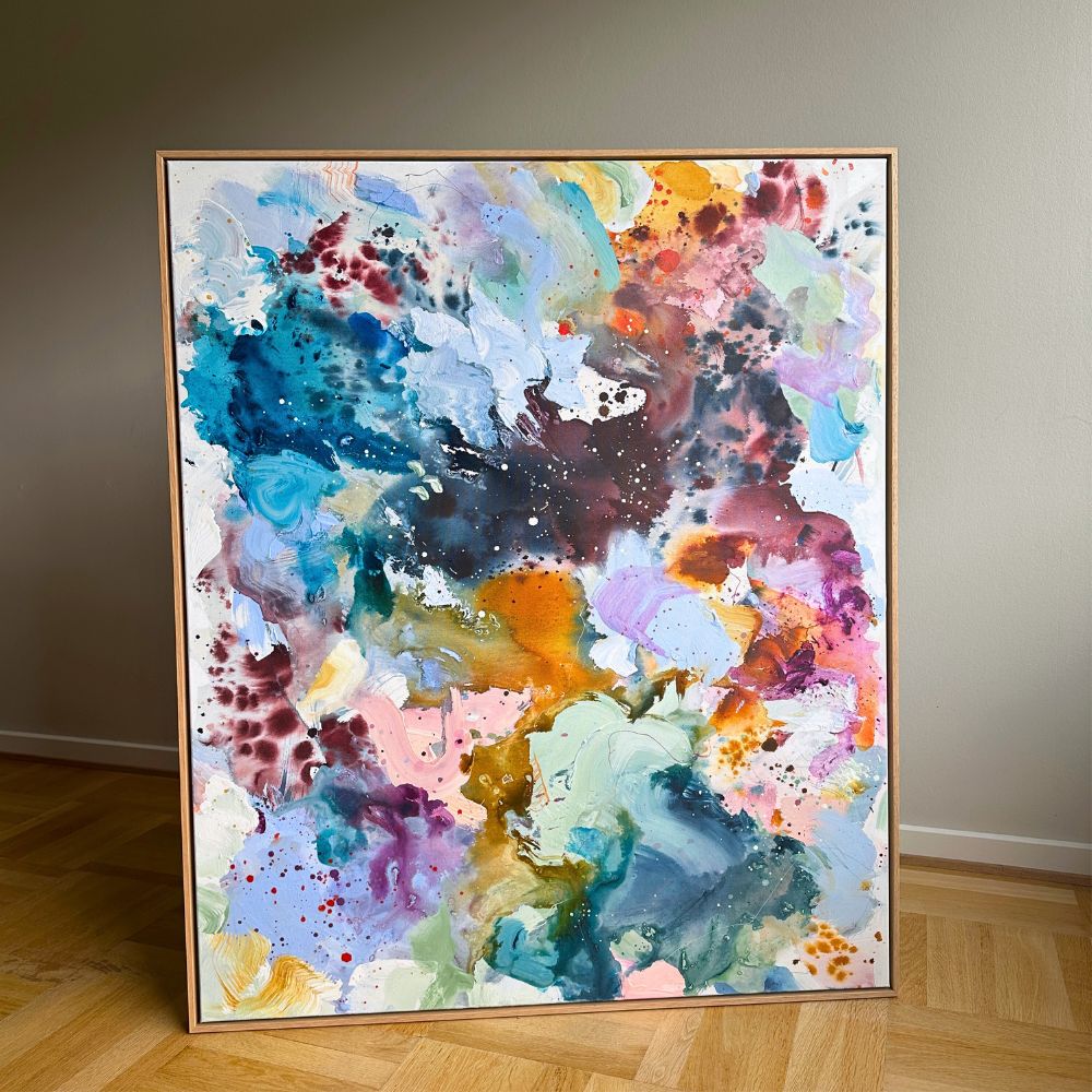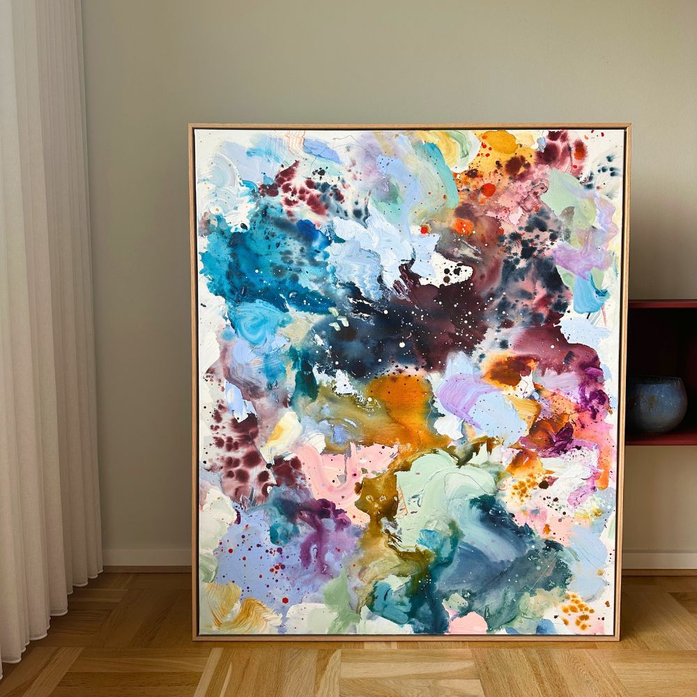 OBS: If you live outside of Denmark, the painting will be shipped to you rolled in a cardboard tube. You will need to take it to your local framer to have the canvas mounted on stretcher bars. The painting is sold without the oak frame.