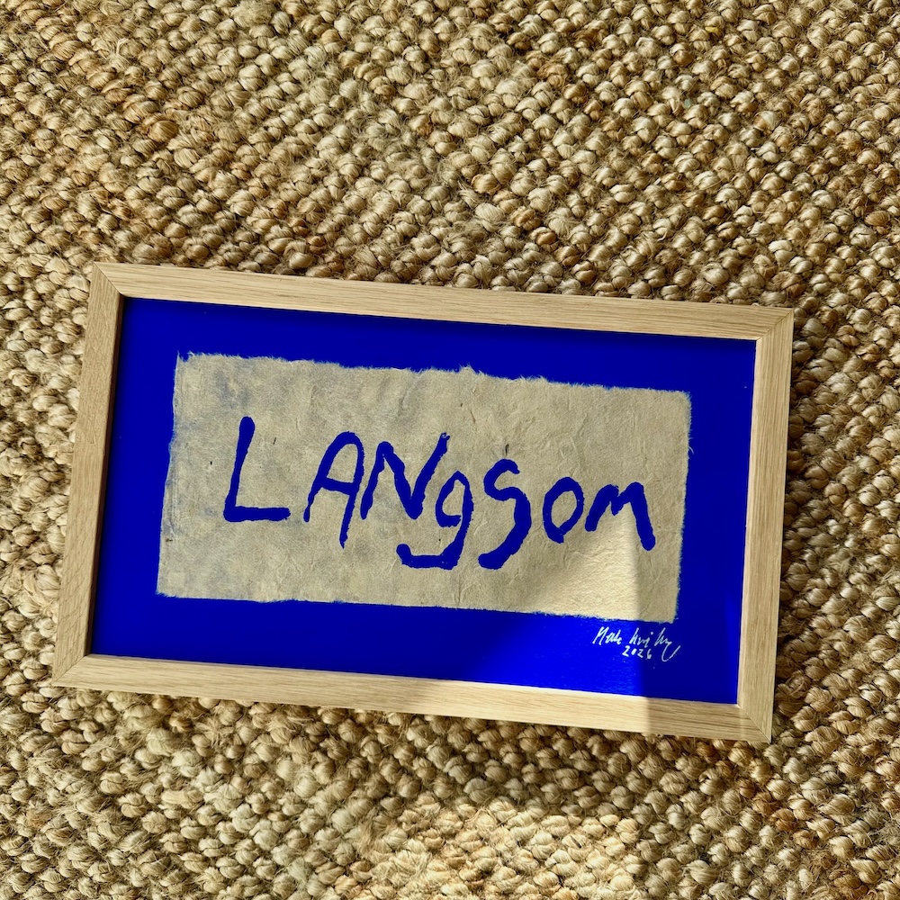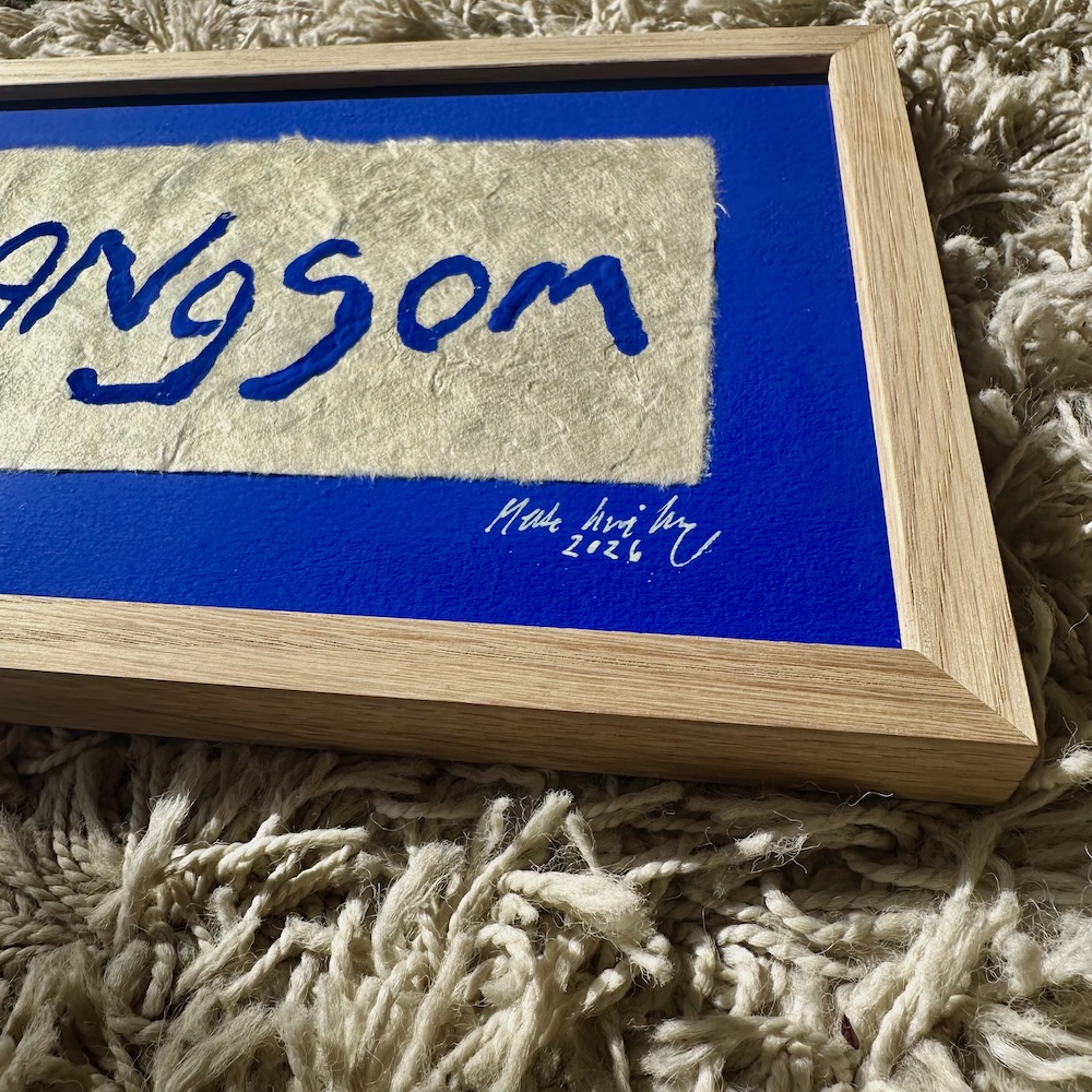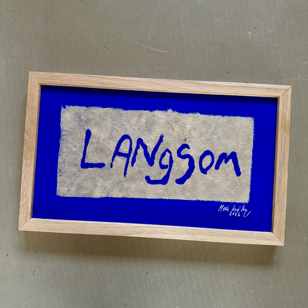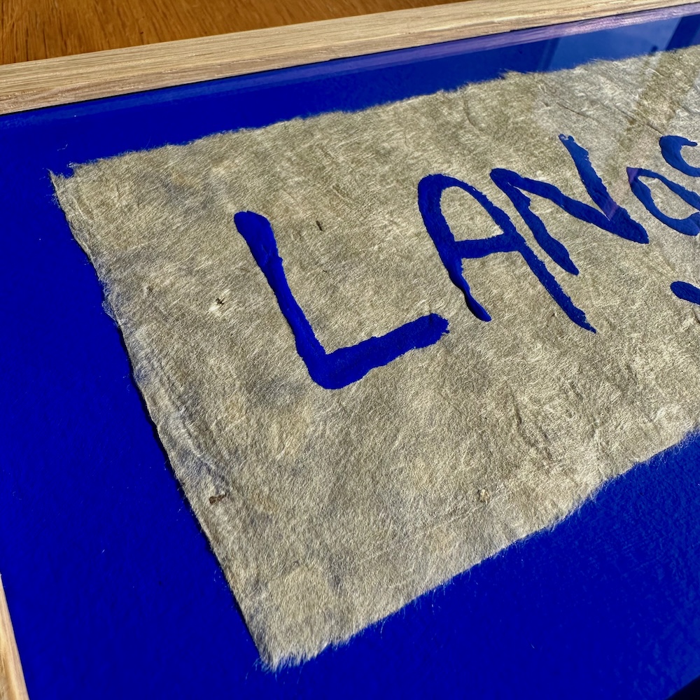 Værket er meget kraftfuldt i al sin enkelthed. Og den smukke ultramarin blå farve står så smukt på det brune håndlavede tynde papir. Papiret er fremstillet på en silkeramme lavet af træ med et stykke bomuld spændt på træet, som fungerer som si. Papiret tørrer på selve sien i solen.