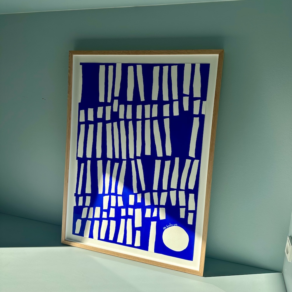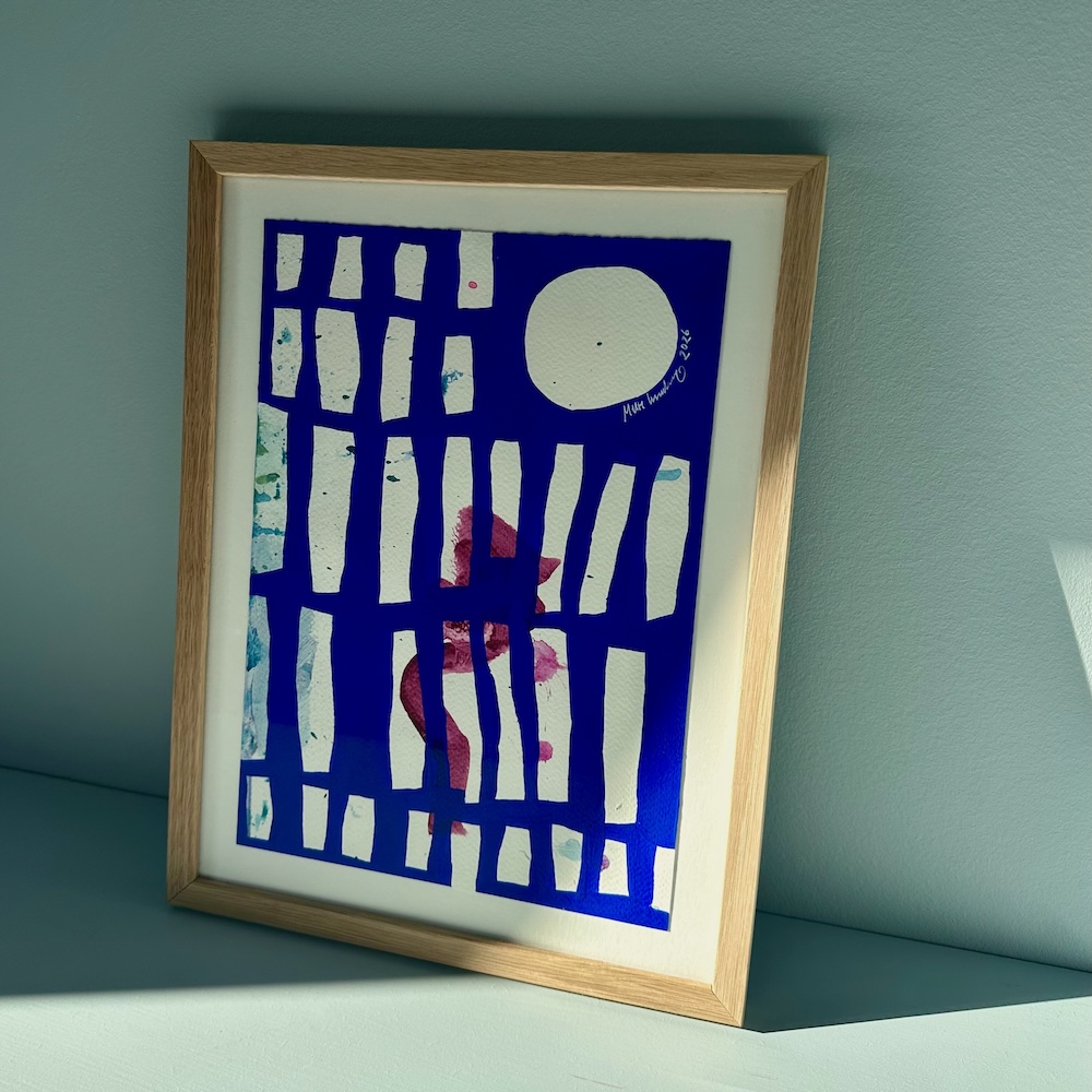 Giv værket til en mor, du holder af. Måske dig selv? Hæng det ved dit natbord eller i din yndlingssolstråle, hvor den blå farve vil stå lysende klart frem.