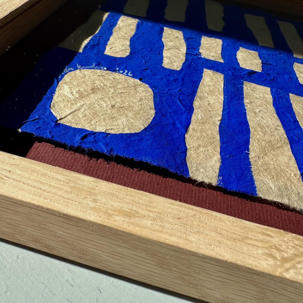 Ordene er mine egne. Og de er håndskrevet af mig – oven på en håndmalet blå baggrund i den intense ultramarine blå farve, som jeg elsker for dens styrke, dybde og intensitet.