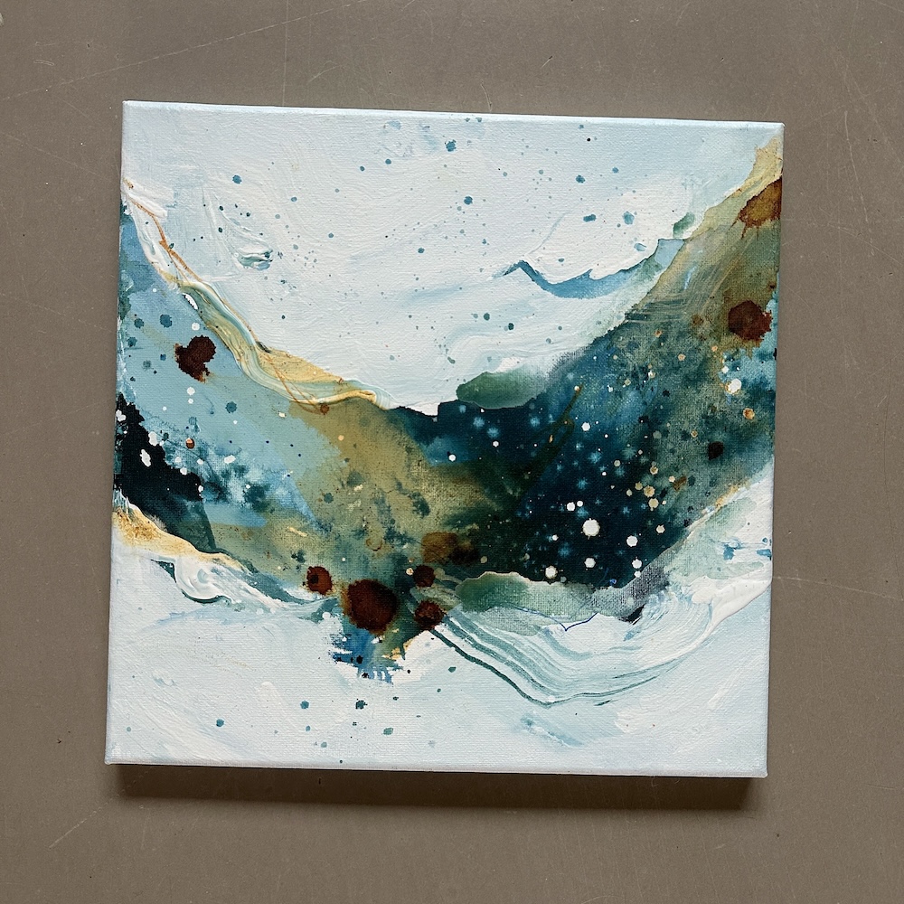 Disse små mini-malerier er domineret af blå, grønne, blå-grønne og brune nuancer, som i sammenspil skaber en virkelig smuk harmoni.