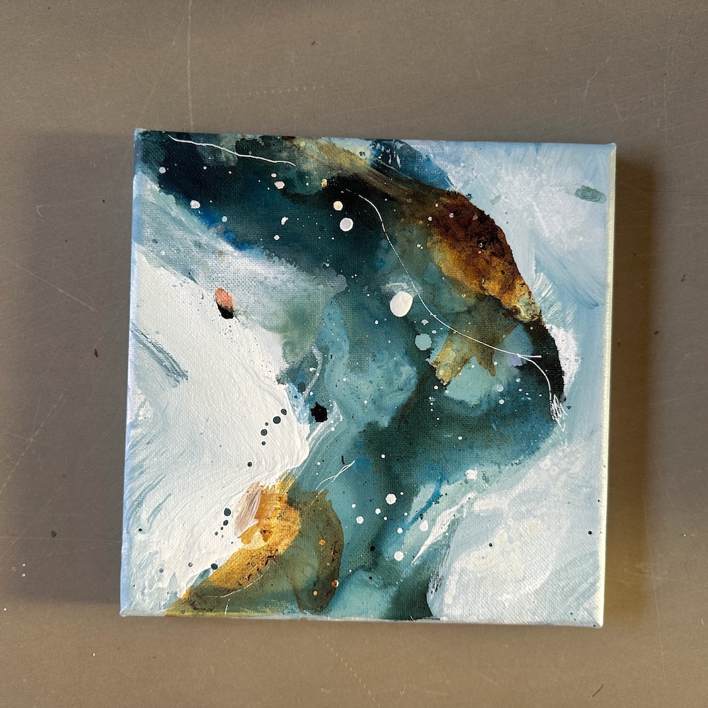Både min maleproces og det færdige udtryk i dette værk repræsenterer mit ønske om mere ro og blødhed i min hverdag, i min kunst og i mit liv helt generelt. Og det håber jeg, at du kan mærke, når du går på opdagelse i de transparente flader og lag, som giver dette maleri karakter.