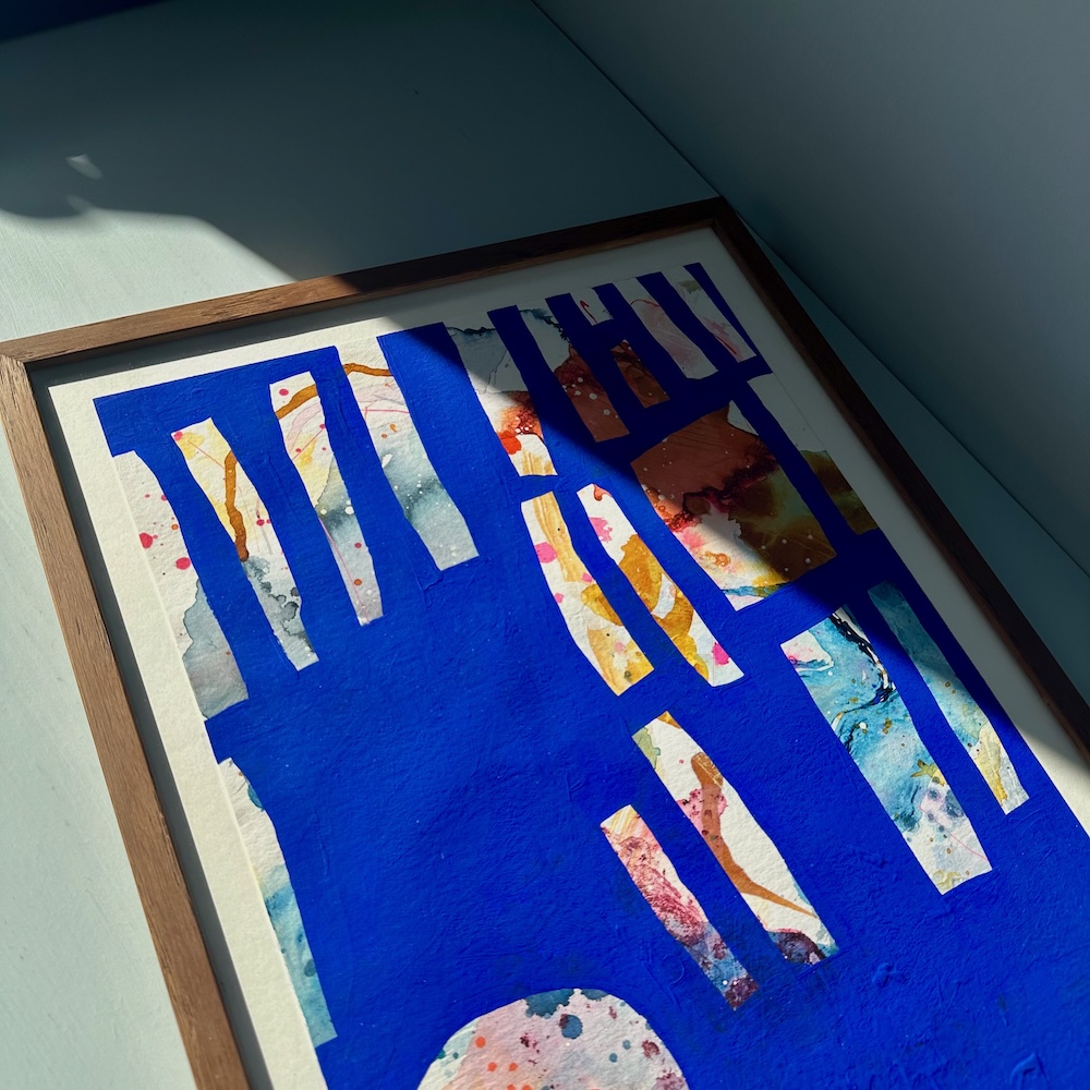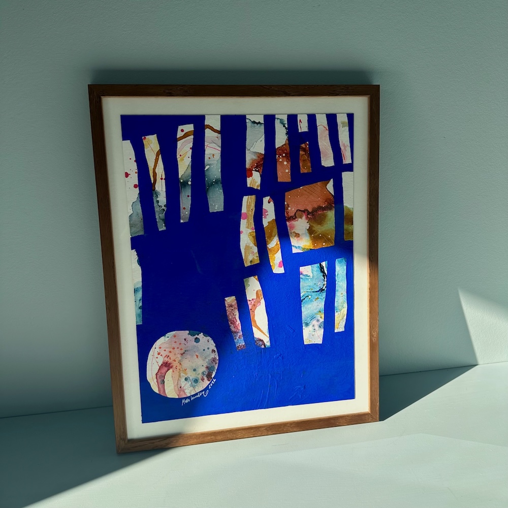 Ultramarine #12 – originalt papirværk – 37×47 cm – røget egetræsramme/ART-glas