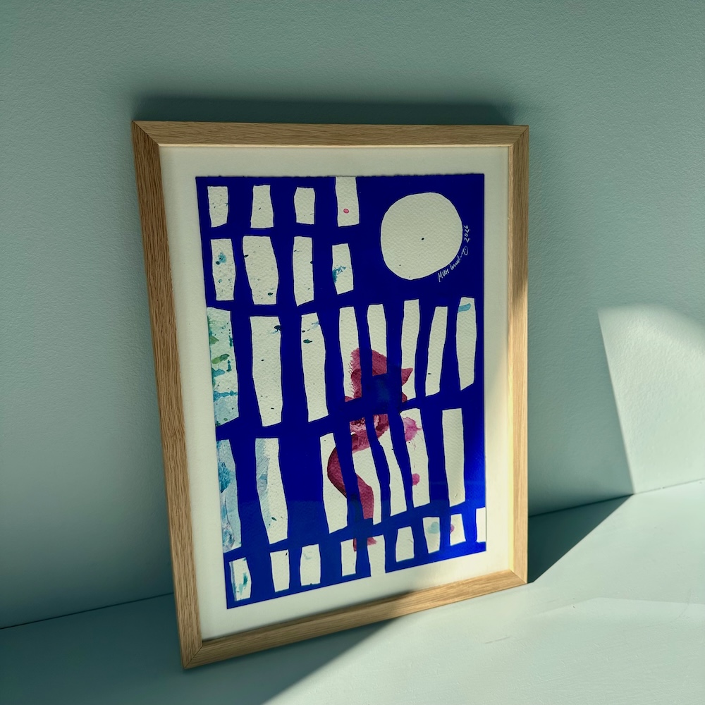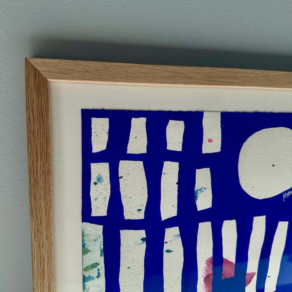 Ultramarine #13 – originalt papirværk – 28 x 36,5 cm – egetræsramme/ART-glas