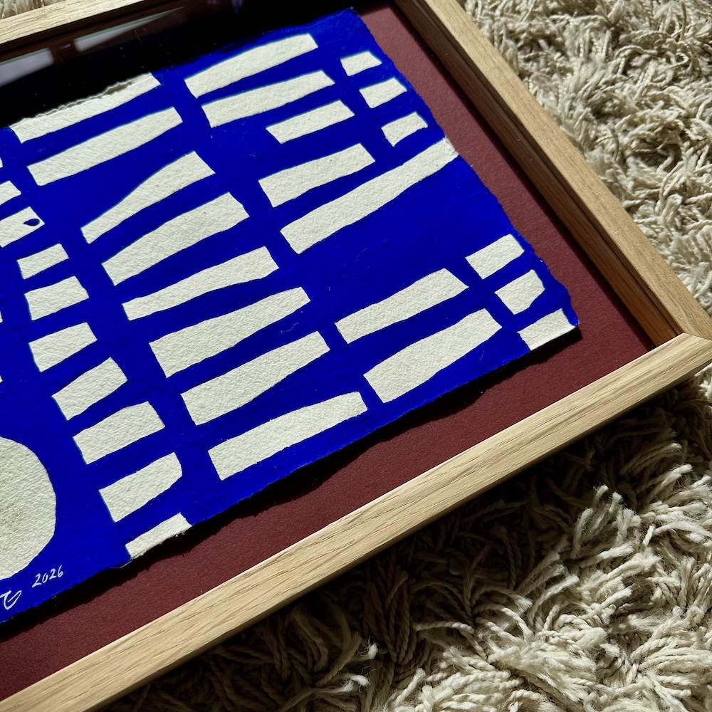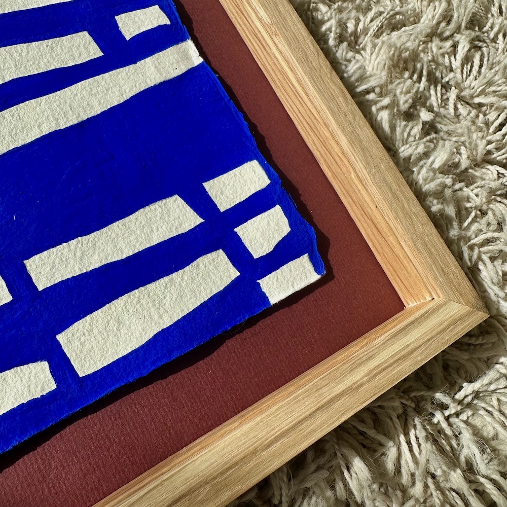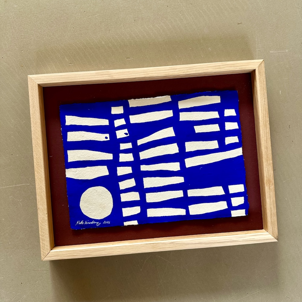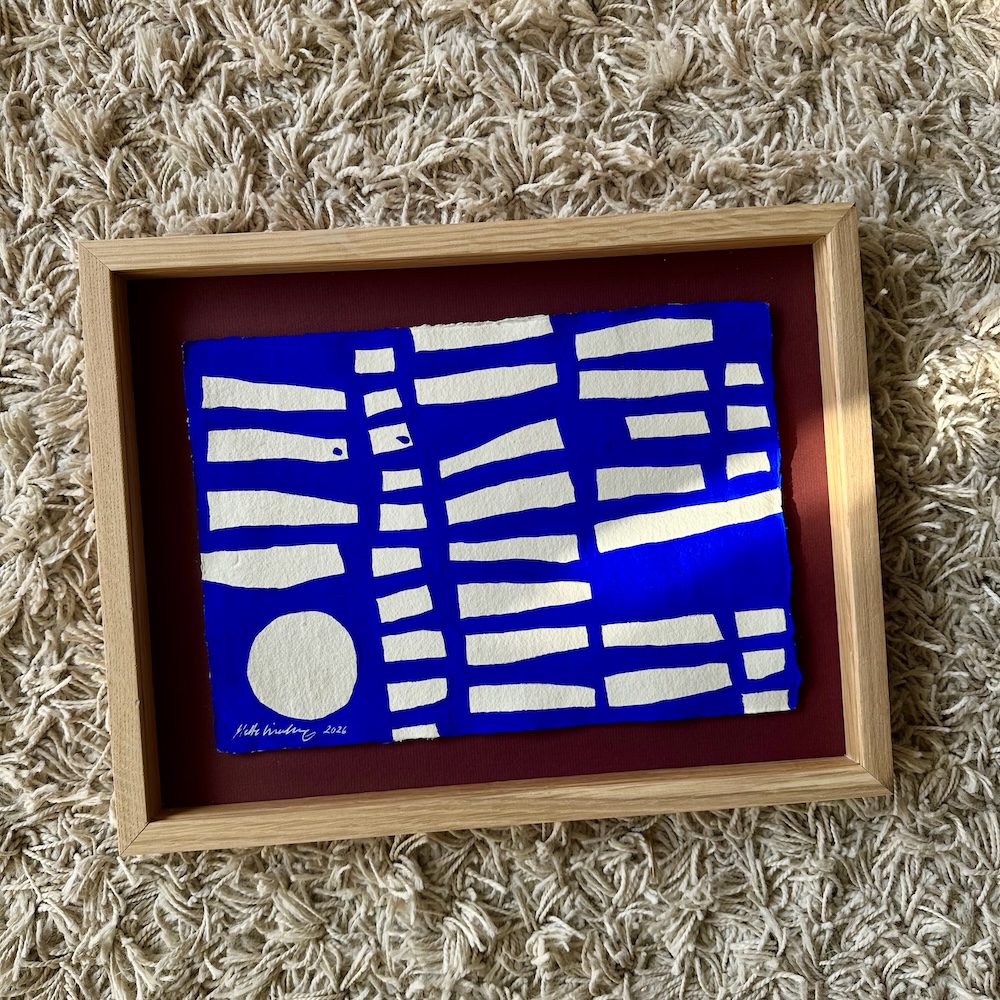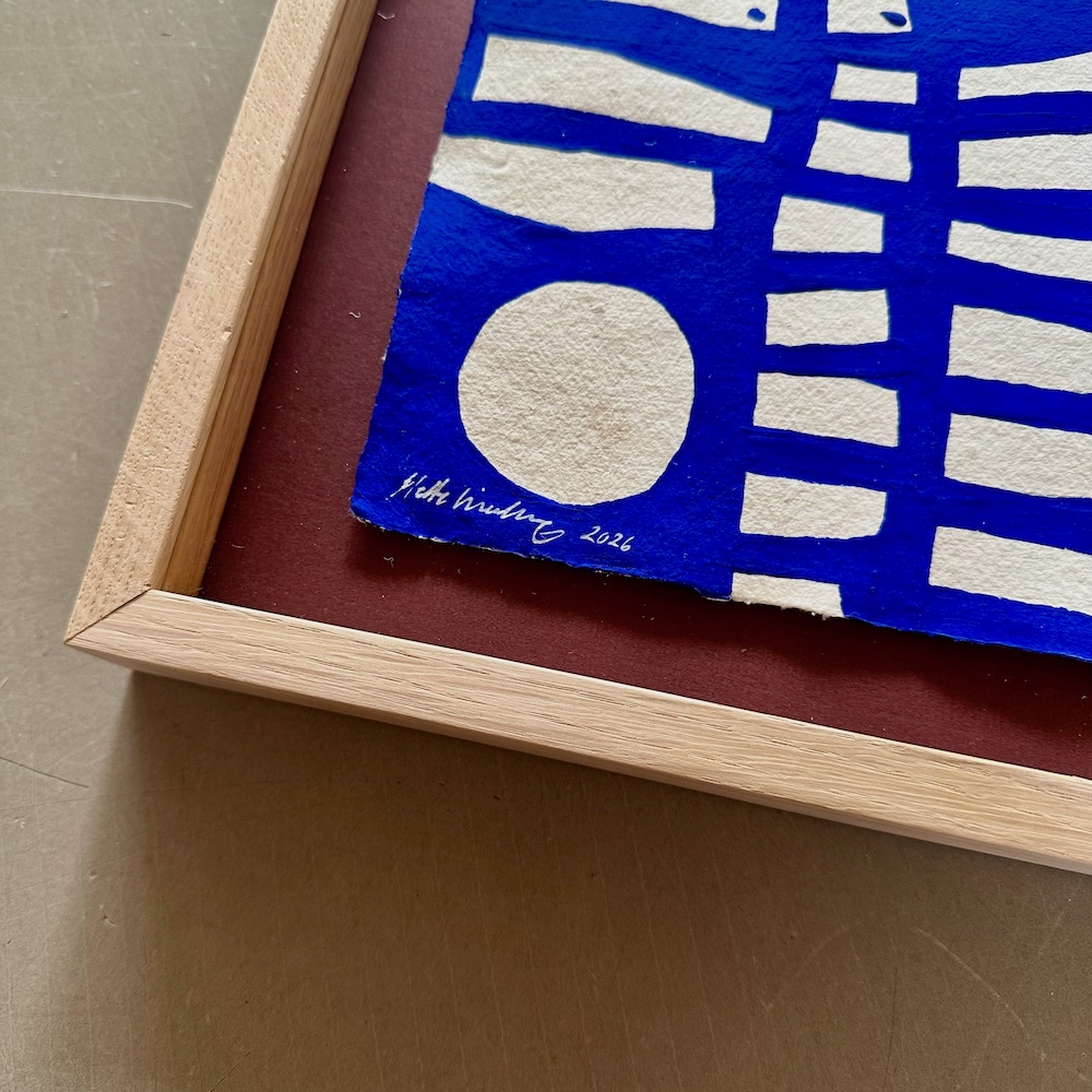 Originalt værk på papir fra min serie “Ultramarine”, malet med ultramarin blå akrylmaling på håndlavet indisk bomulds-papir med struktur.