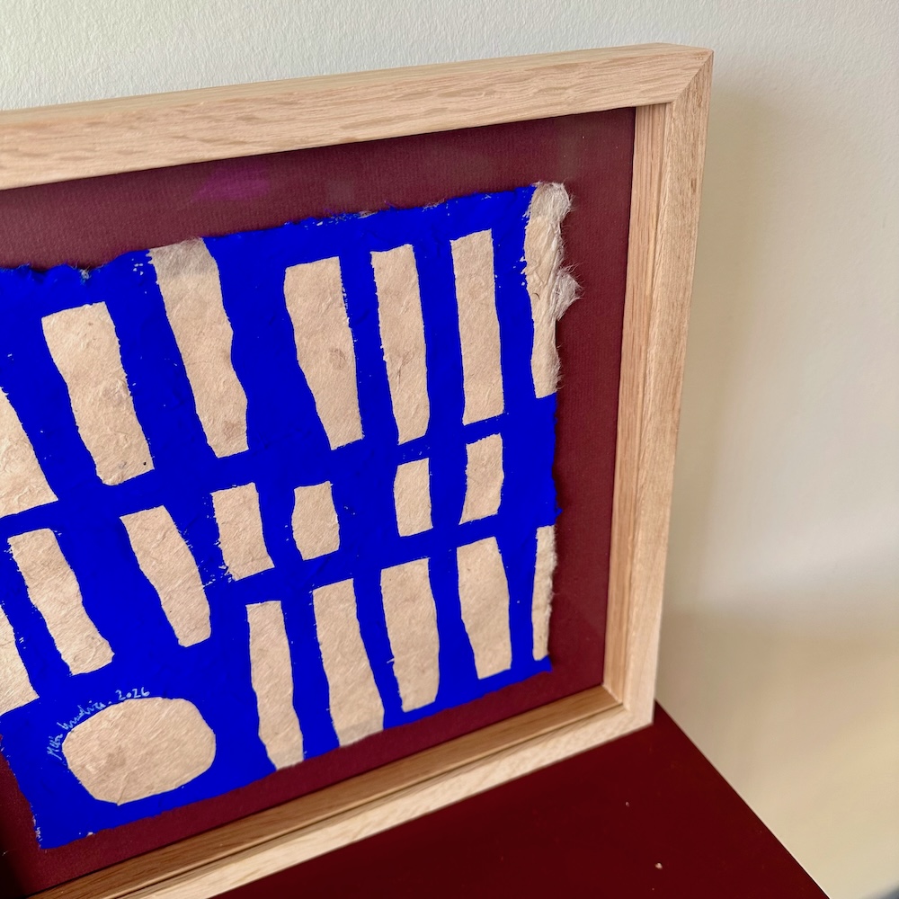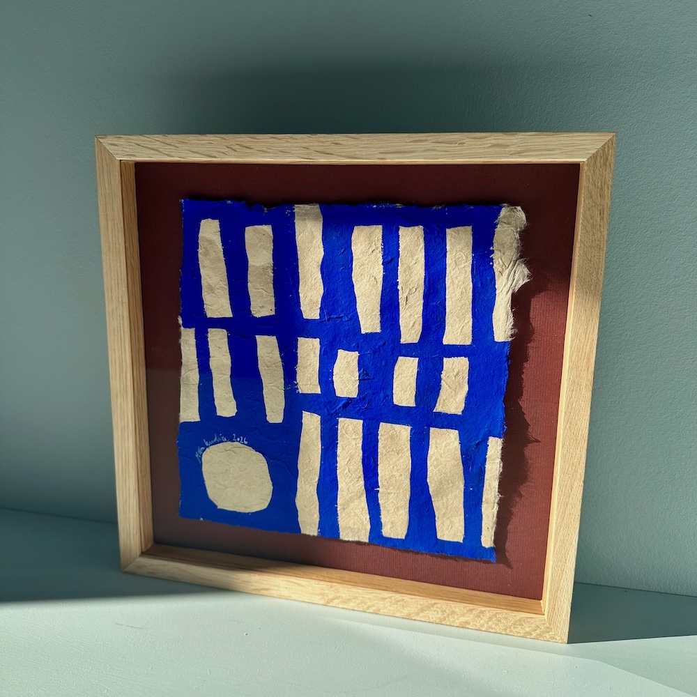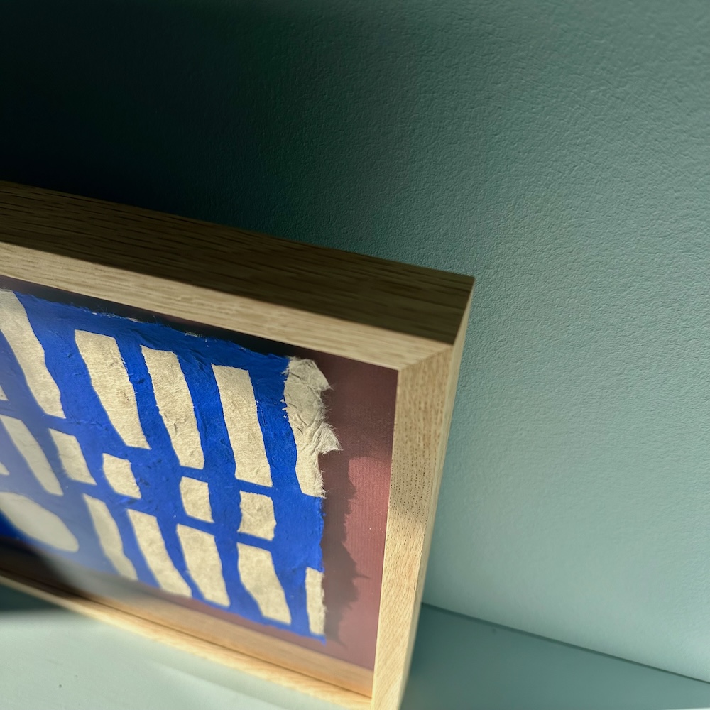 Ultramarine #19 – originalt papirværk – 31 x 32 cm – egetræsramme/ART-glas