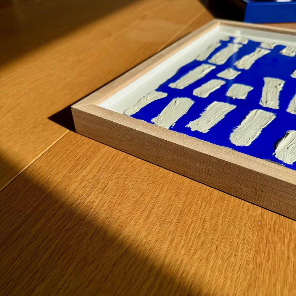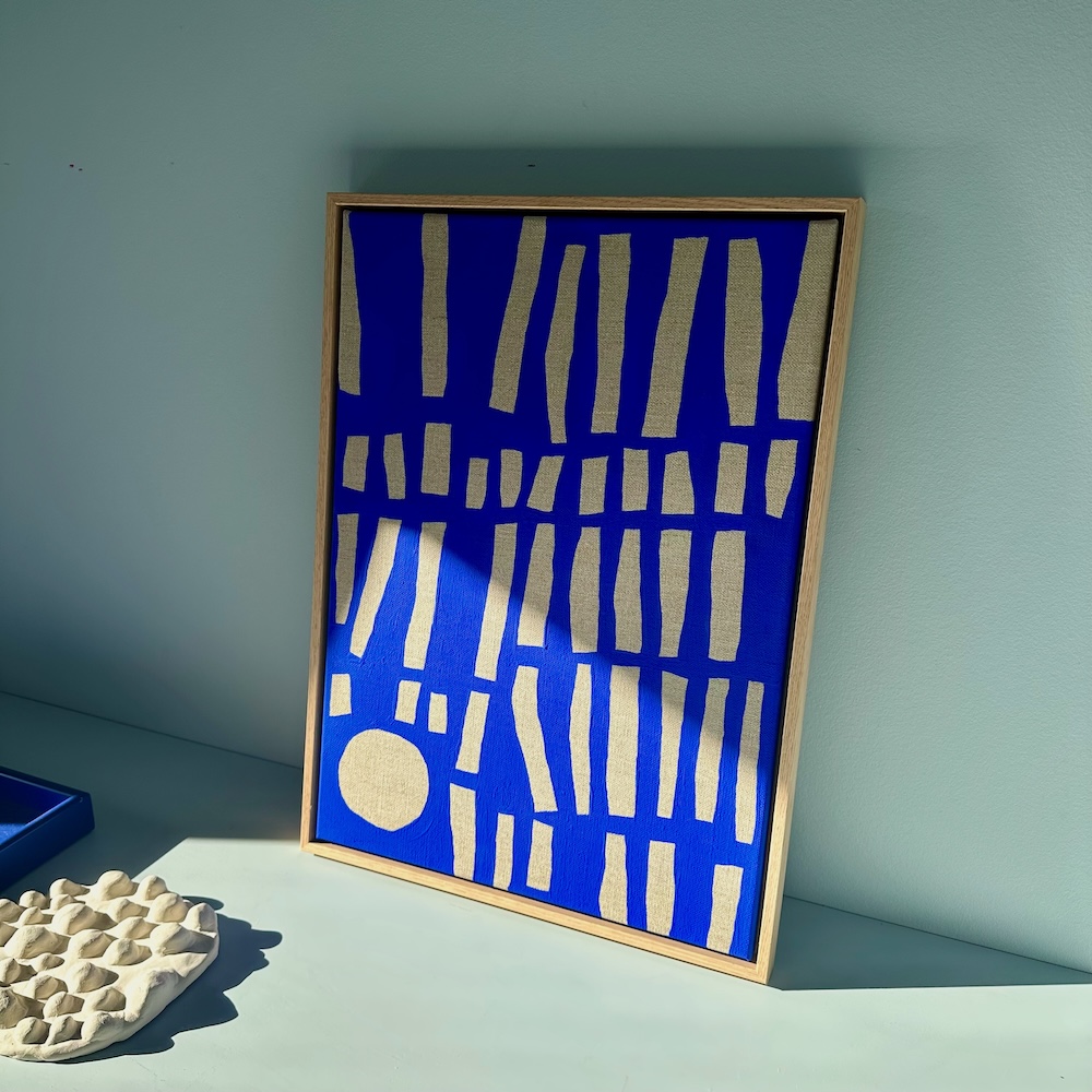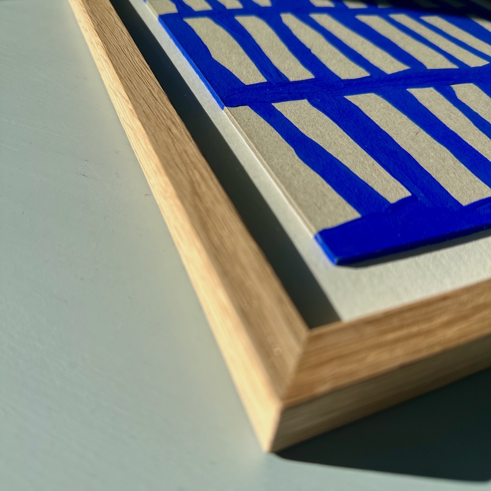 Ultramarine #21 – originalt værk på hørlærred – 57 x 42 cm – egetræsramme